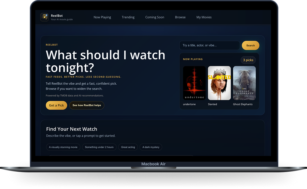 I’m currently building ReelBot, an AI-powered movie recommendation experience designed to help people decide what to watch faster. It delivers clear, confident picks based on mood, context, and intent, not endless scrolling.